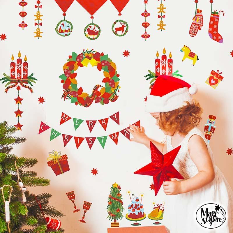ウォールステッカー はがせる 79 以上節約 シール 壁紙 クリスマス 飾り オーナメント 北欧レッド サンタクロース クリスマスツリー リース